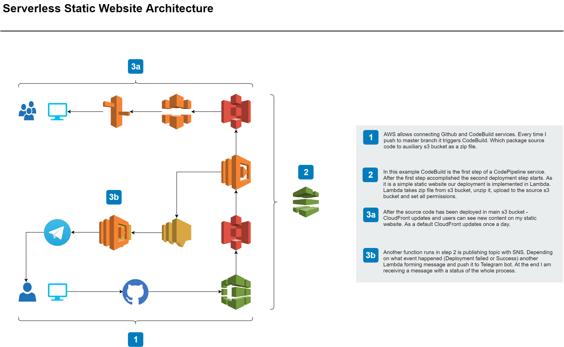 This serverless site has been developed in the AWS cloud. Also I automated deployment process. Please, explore more here: architecture and here: source code